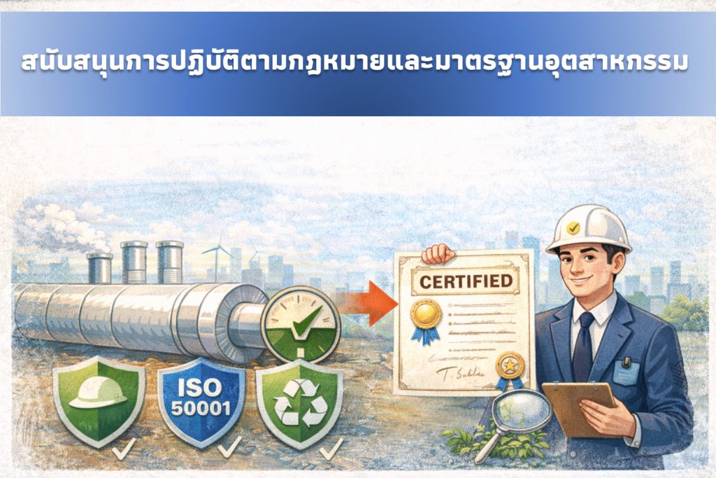 หลายอุตสาหกรรมต้องปฏิบัติตามกฎหมายด้านความปลอดภัยและพลังงาน เช่น มาตรฐานความปลอดภัยในการทำงาน มาตรฐานการจัดการพลังงาน (ISO 50001) หรือมาตรฐานสิ่งแวดล้อม การใช้ฉนวนกันความร้อนช่วยให้โรงงาน ผ่านการตรวจสอบและรับรองมาตรฐานได้ง่ายขึ้น